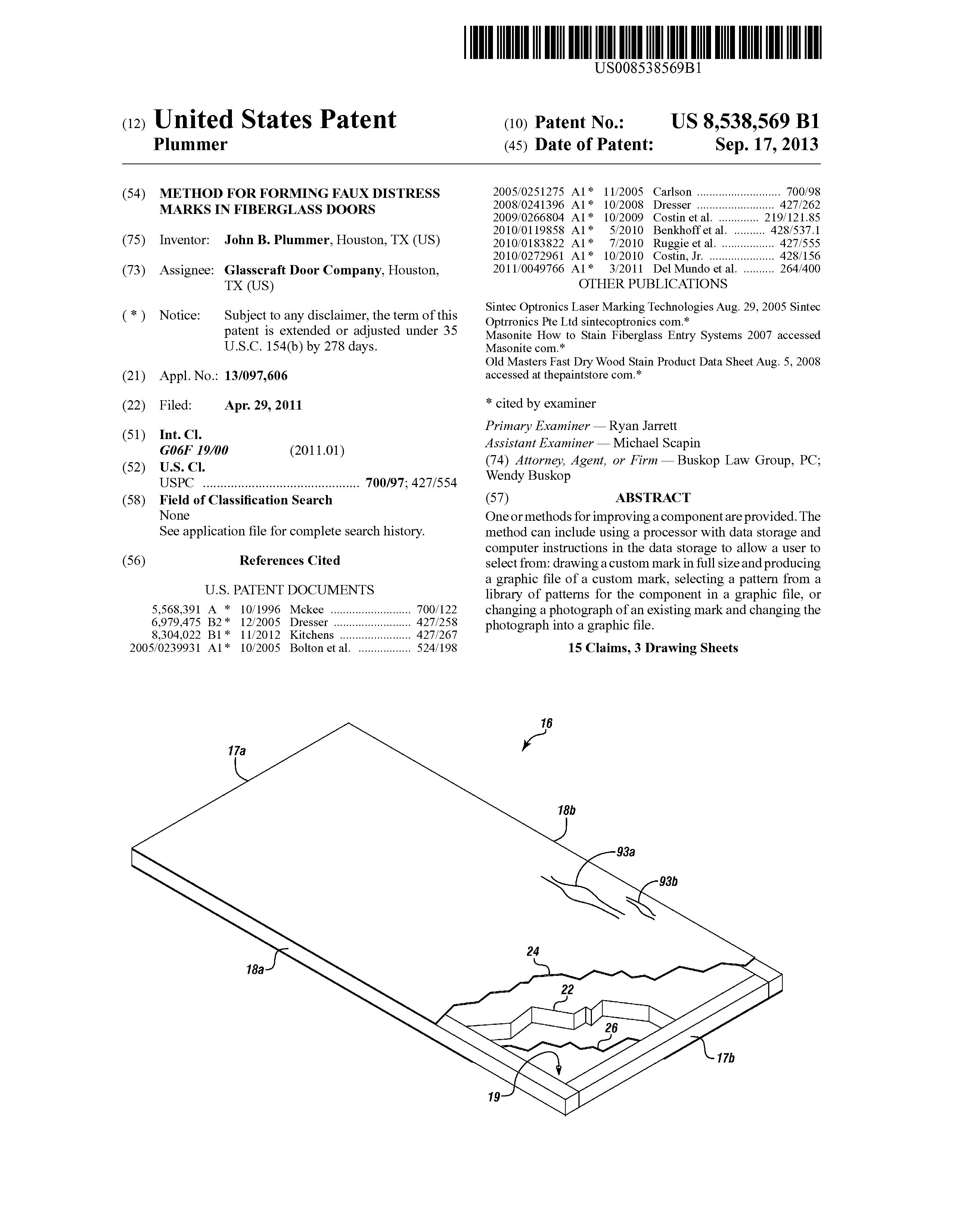 Method for Forming Faux Distress Marks in FiberCraft Doors